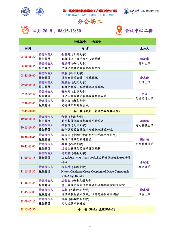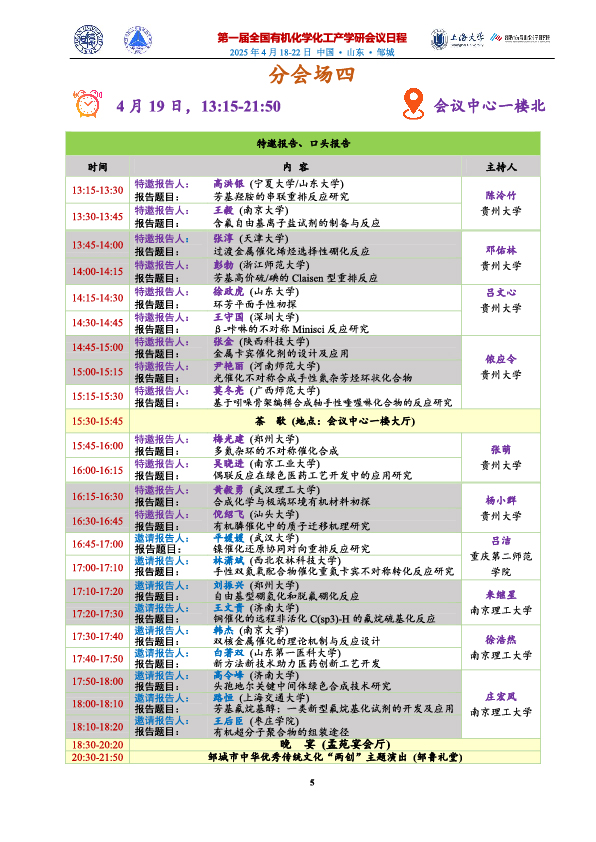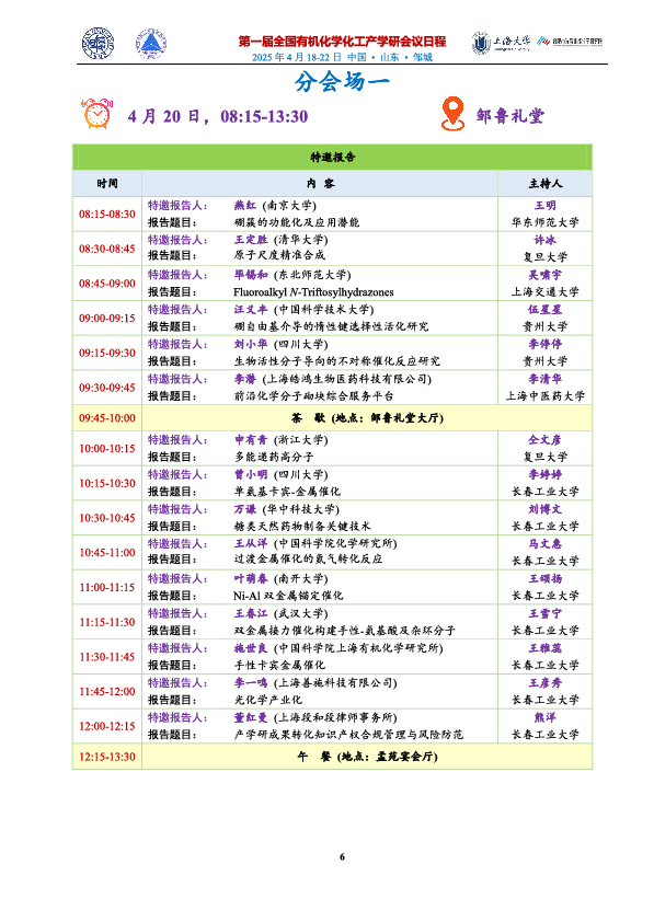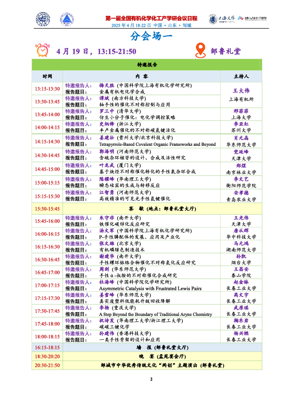 第一屆全國有機化學化工產學研會議于2025年4月18日—22日在山東省鄒城市孟苑(孟子故里)成功舉行。本次會議由復旦大學、中國科學院上海有機化學研究所主辦,上海大學、合肥市先導功能分子研究院承辦,曲阜師范大學、棗莊學院協(xié)辦。會議集全國有機化學化工及相關領域的知名專家、企業(yè)家、青年學者等于一堂,討論有機化學化工領域最新政策、科學與技術進展,交流分享最新學術成果、科技產業(yè)成果,促進有機化學化工領域學術與工業(yè)界的深度融合與發(fā)展,助力地方化學化工領域經濟的可持續(xù)發(fā)展。