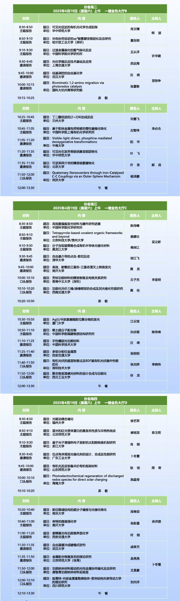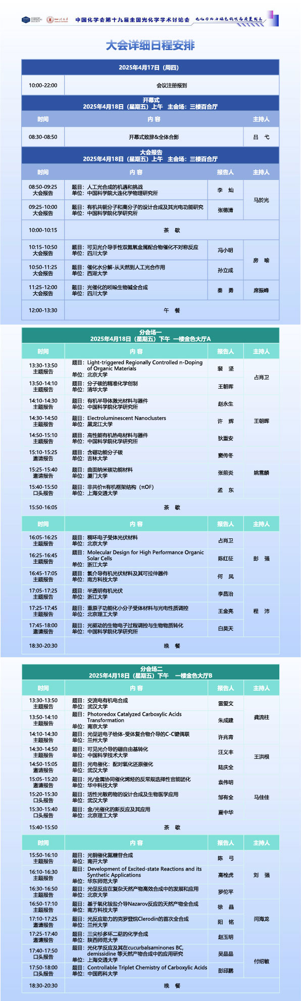 中國化學會第十九屆全國光化學學術討論會于2025年4月17日-20日在四川省成都市成功召開。